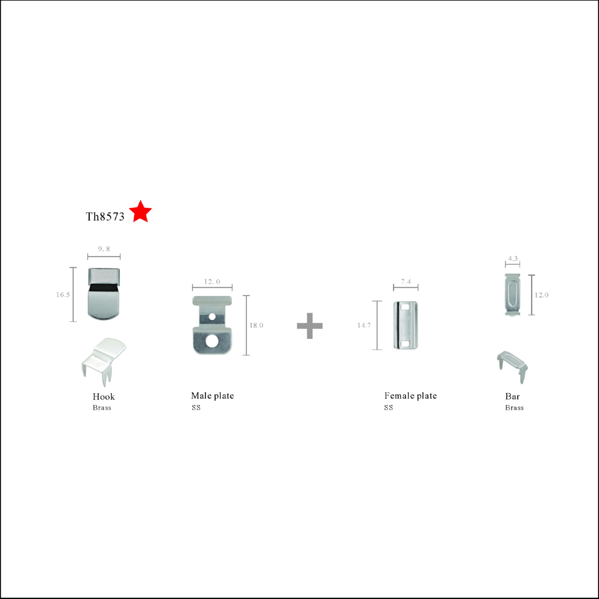 TH4573B 男装两爪西裤扣 不锈钢 过八级检针 10万起订
